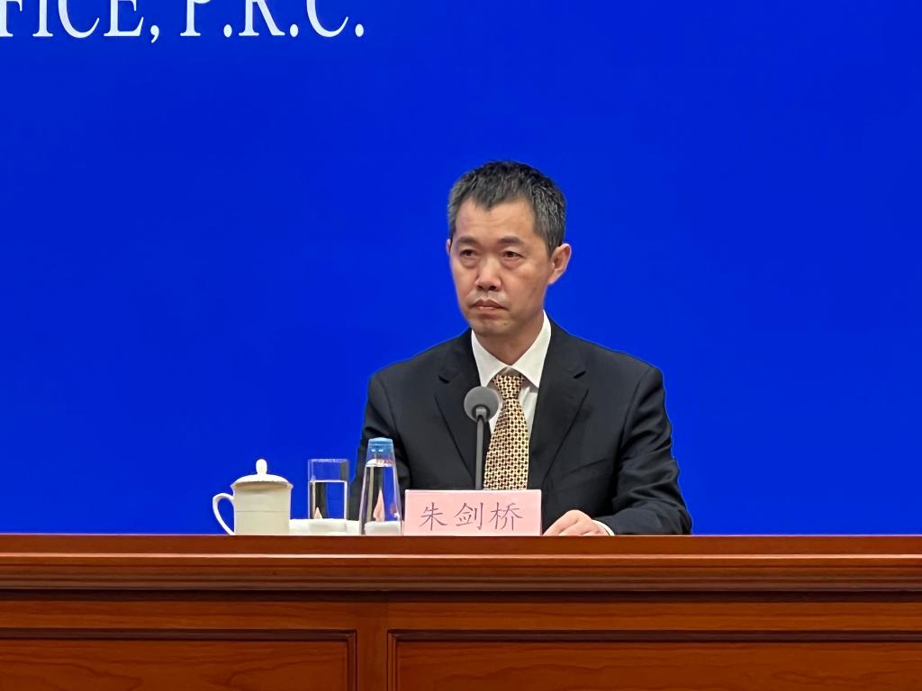 6月5日,國務院新聞辦公室在北京舉行國務院政策例行吹風會,市場監管總局綜合規劃司司長朱劍橋介紹建設全國統一大市場有關情況。新華社記者 韓佳諾 攝