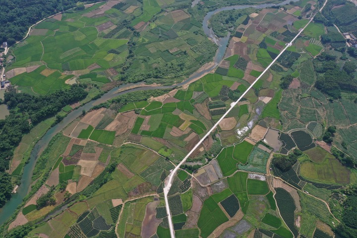 圖為6月15日拍攝的廣西柳州市鹿寨縣中渡鎮石墨村高標準農田(無人機照片)。新華社記者 黃孝邦 攝