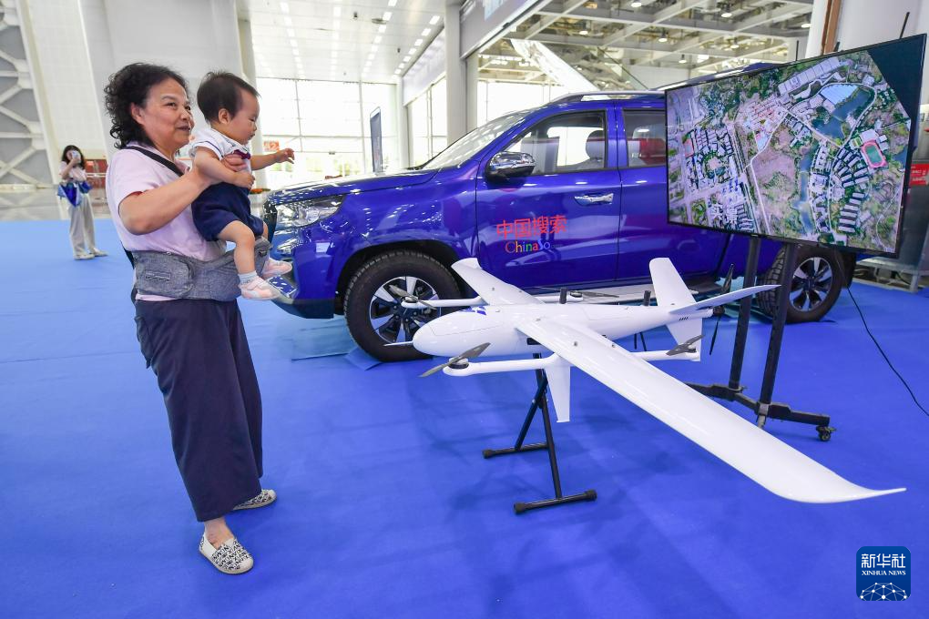7月12日,參觀者在中國新媒體技術展上參觀無人機設備。新華社記者 陳澤國 攝