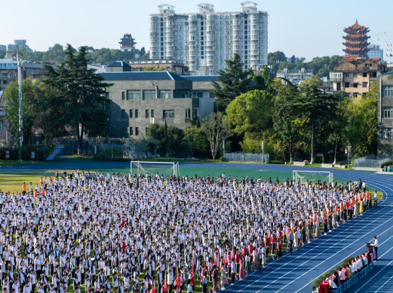 湖北省武昌實驗中學師生在參加開學典禮。(杜子璇 攝)