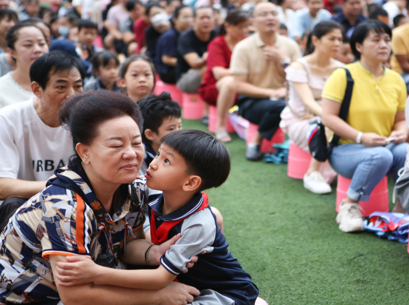 ??谑杏裆硨嶒瀸W校一年級新生和家長在“開筆禮”儀式活動現場。新華社記者樊雨晴 攝