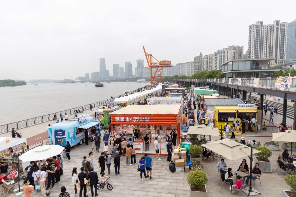 5月20日拍攝的上??Х任幕芟盗谢顒又拔靼秶H咖啡生活節”咖啡市集。新華社記者 王翔 攝
