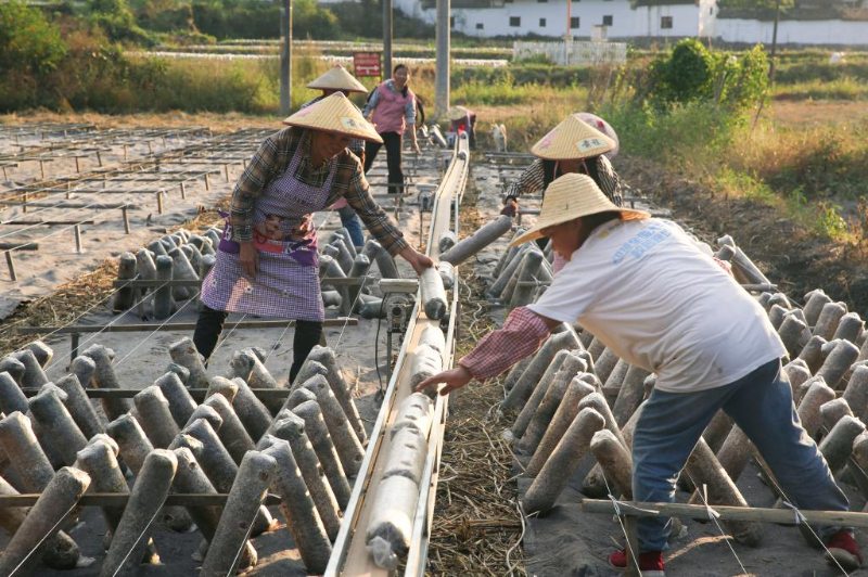 在浙江省云和縣赤石鄉麻垟村的稻耳輪作小微產業園里,綠緣農產品專業合作社負責人沈飛林帶領村民,將一個個打過孔的菌棒碼放在已完成收割的稻田里。
