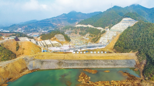 1月3日,瀏陽市達滸鎮,椒花水庫項目建設現場一派熱火朝天。