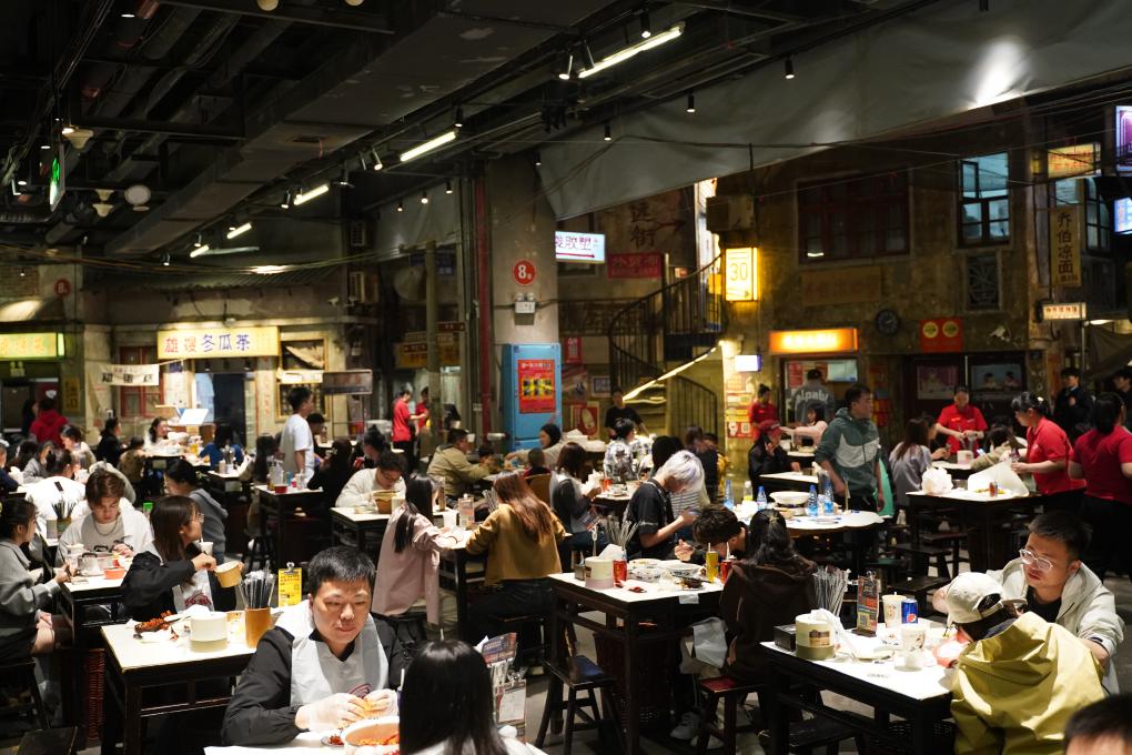 市民游客在長沙美食地標“文和友”品嘗美食。(田甜 攝)