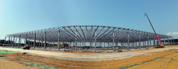 3月13日,海南省東方市湘瓊先進制造業共建產業園,三一湘瓊(海南)智造產業園項目鋼結構聯合廠房順利封頂。 湖南日報全媒體記者 羅新國 攝