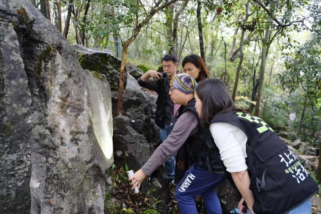 “知了青年”團隊成員在浯溪碑林勘察及采集資料。(馬欄山文化數字化創新中心供圖)