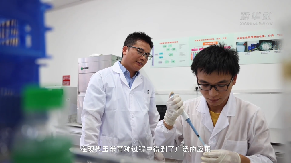 在湖南農業大學農學院的重點實驗室內,副教授黃成正在指導學生認真操作實驗器皿,對玉米植株葉片進行基因型鑒定,在眾多玉米樣本中,可以準確、快速地選擇具有優質性狀的樣本,為下一步田間育種試驗奠定基礎。