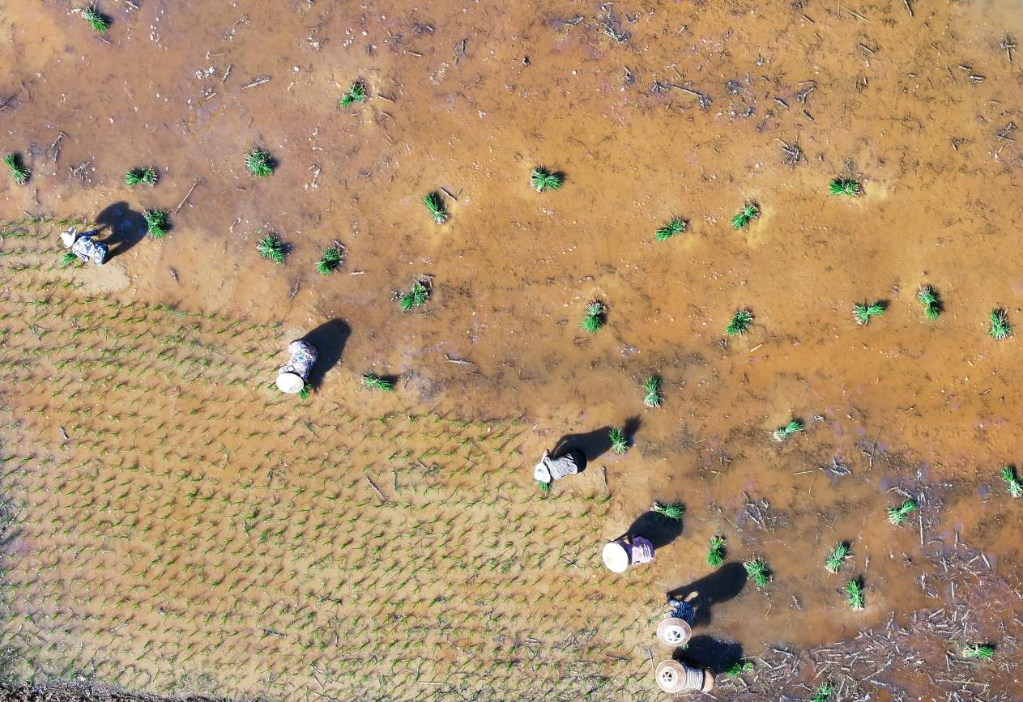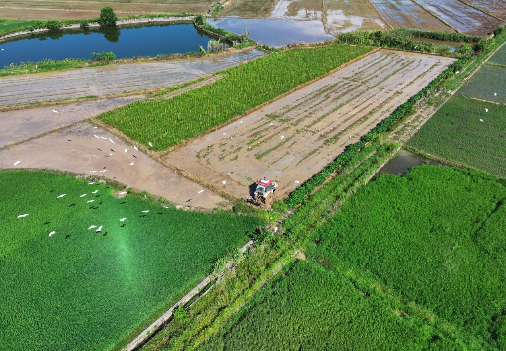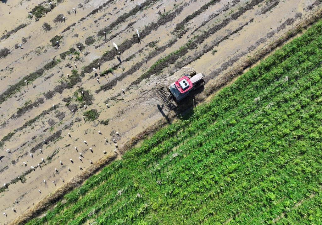 “三夏”大忙時節,湖南省常寧市農民們搶抓農時,卷起褲腳,在蓄滿水的稻田里躬身勞作,進行晚稻插秧。轟鳴的拖拉機翻起深褐色的泥浪,農民們將青翠的秧苗插入水田。一幅生機勃勃的農耕圖景徐徐展開。(蔣若蕾 錢輝)