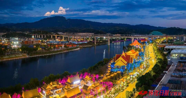 東盟集燈光璀璨,游人如織。(懷化日報全媒體記者 潘雨 攝)