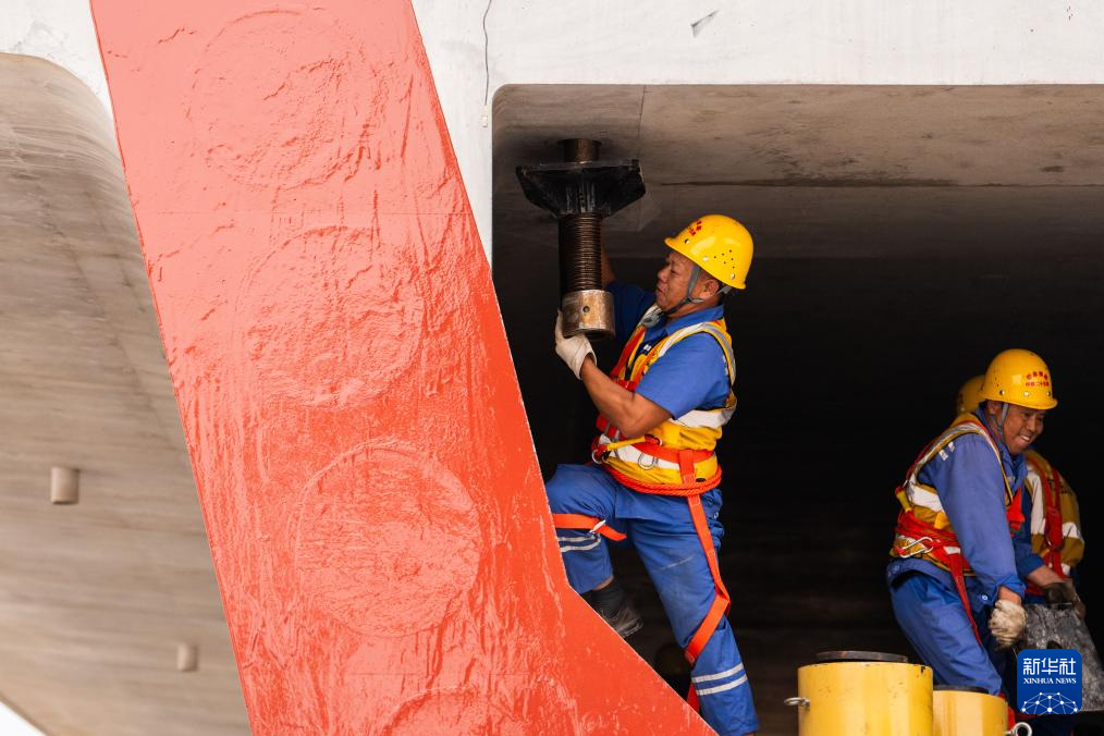 10月13日,中鐵二十五局工人在邵永高鐵跨蘆洪江特大橋架梁施工現場作業。新華社記者 陳思汗 攝