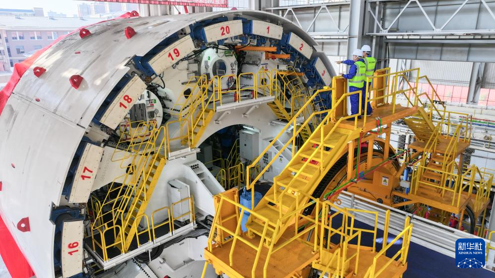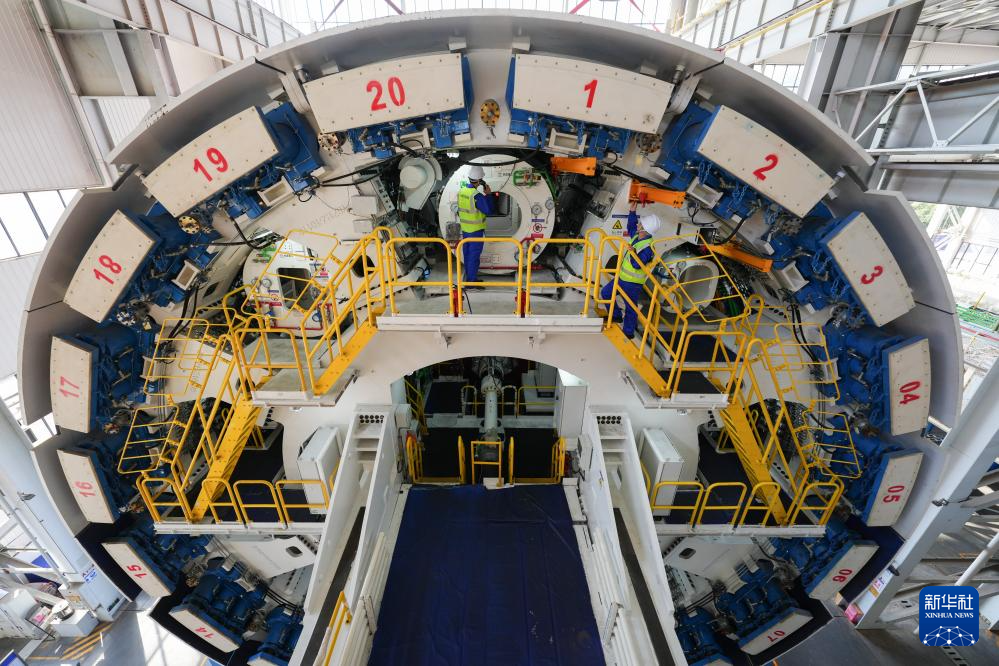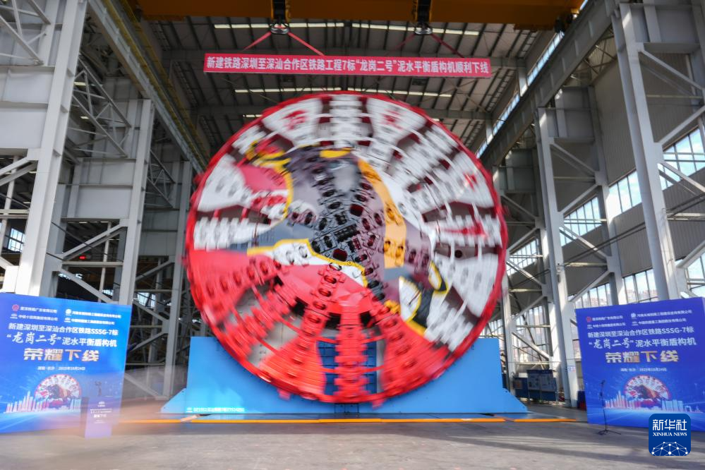 10月24日在鐵建重工長沙第一產業園拍攝的“龍崗二號”盾構機。新華社記者 陳澤國 攝
