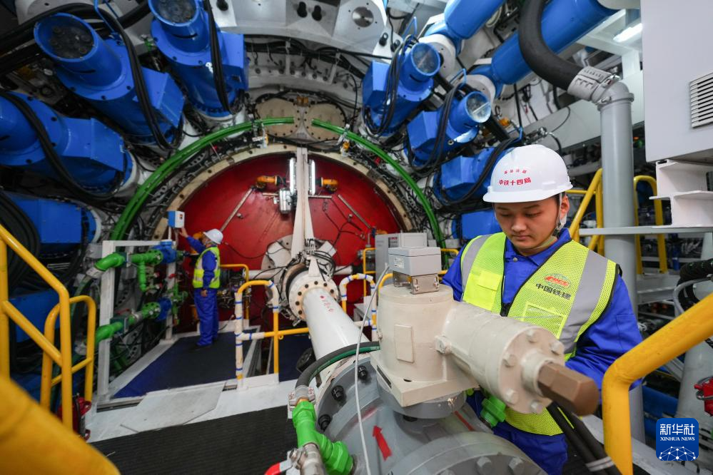 10月24日,在鐵建重工長沙第一產業園,工人在調試“龍崗二號”盾構機。新華社記者 陳澤國 攝pagebreak